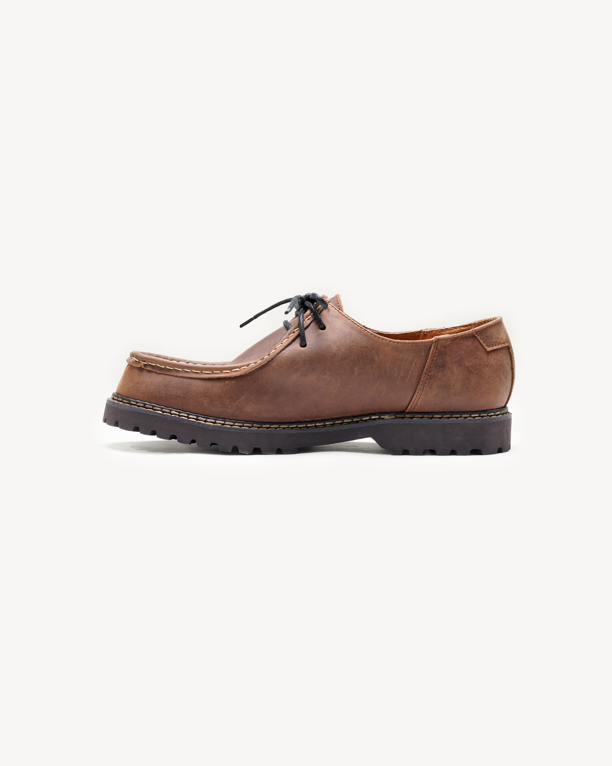 The Akai Moc Toe Derby combines durability and style in one silhouette. Crafted in genuine leather, finished with a distinct moc toe, and grounded on a lug sole, it offers both structure and comfort. Each pair is handmade in Marikina, designed to transition easily between indoor, outdoor, street, and luxury settings.
